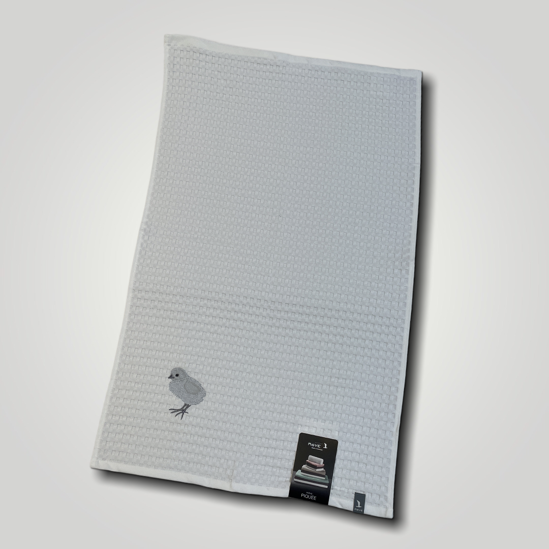 1x MÖVE Piquée weiss Küchenhandtuch mit Küken in silber Fb. 1610