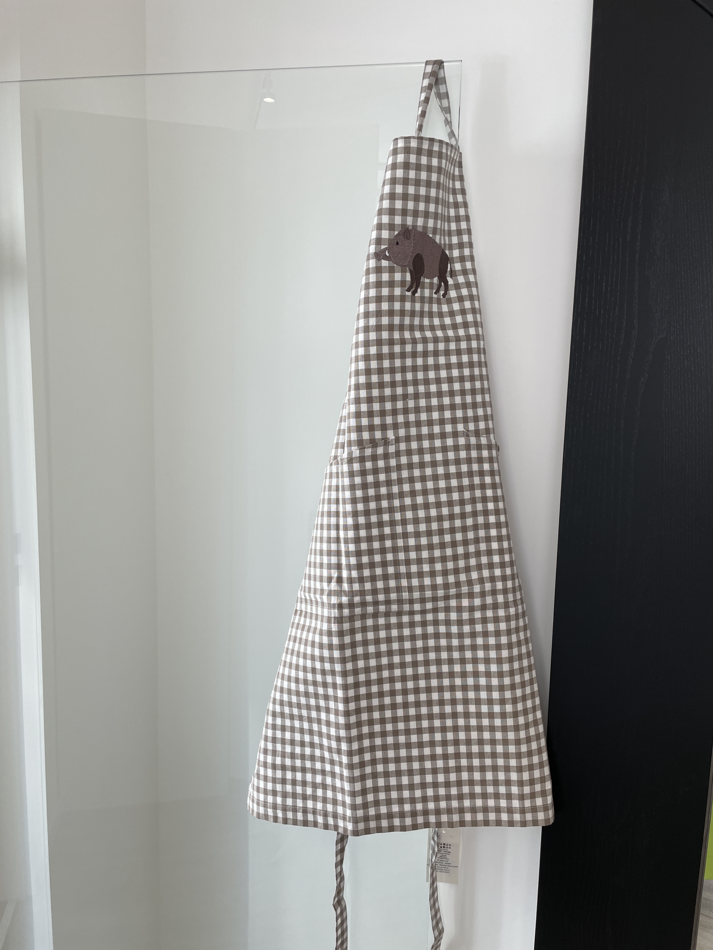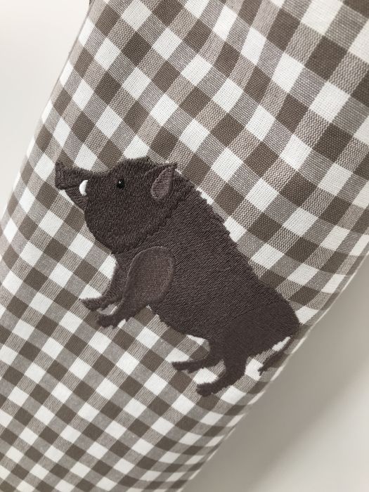 Die Schürze ist auf dem Latz mit dem Wildschwein aufwendig bestickt in ca. 14x9 cm Grösse.